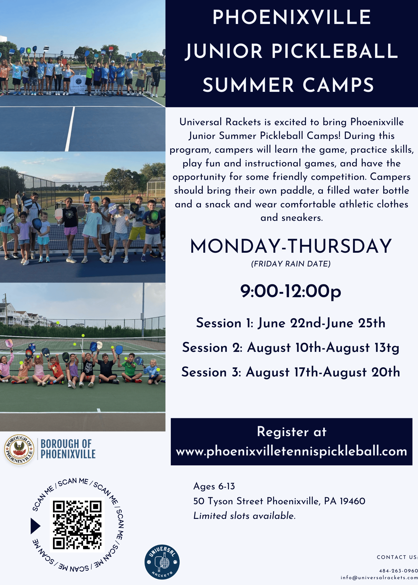 Session 1: Junior Pickleball Camp 9:00-12:00p (June 22nd-June 25th (rain date: 6/26)