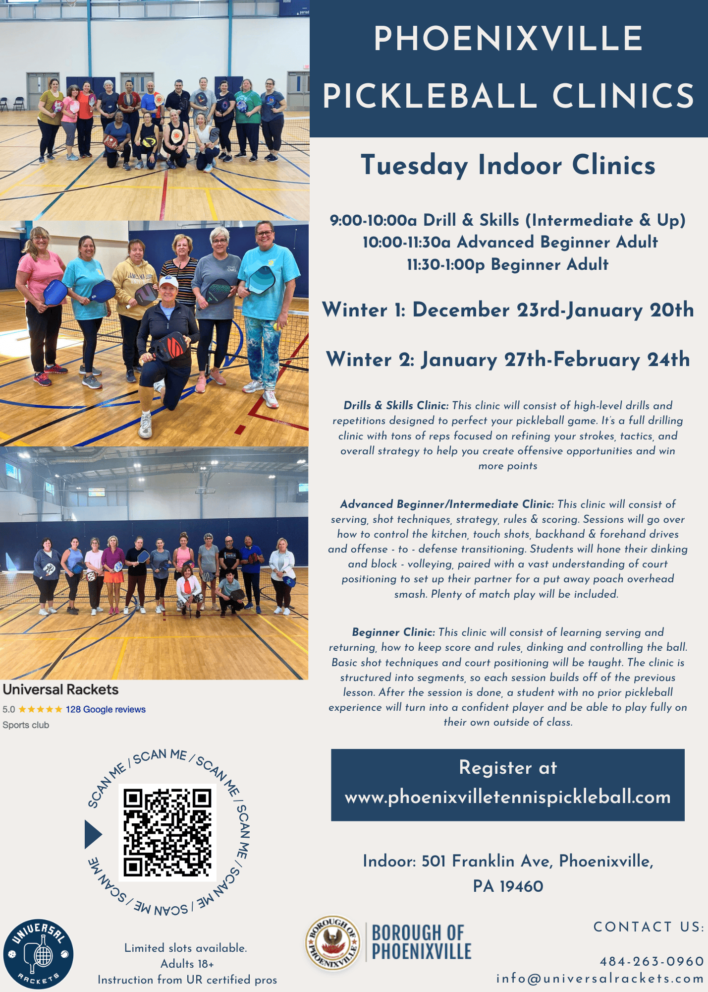 Winter 2: TUESDAY INDOOR Advanced Beginner Pickleball Clinic 10:00-11:30a (December 23rd-January 20th)